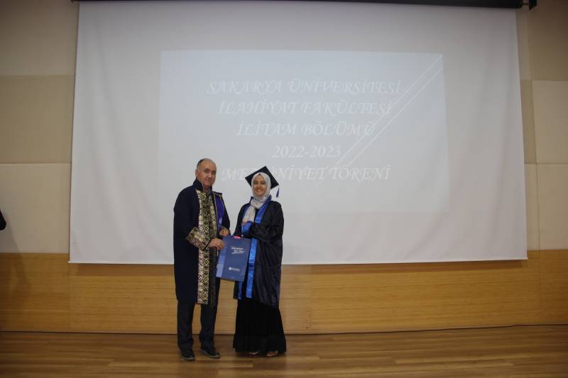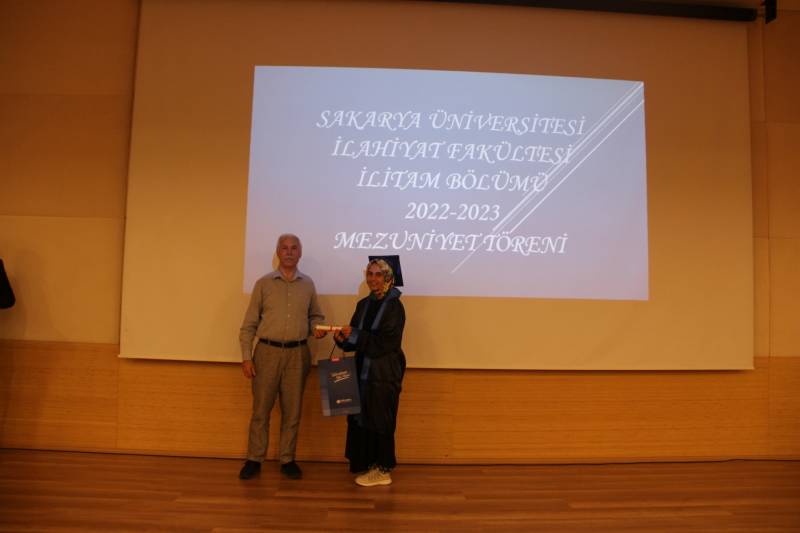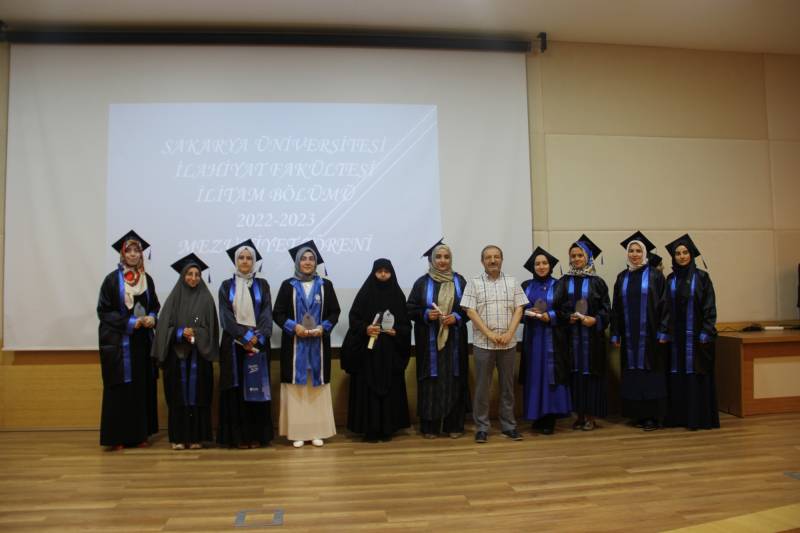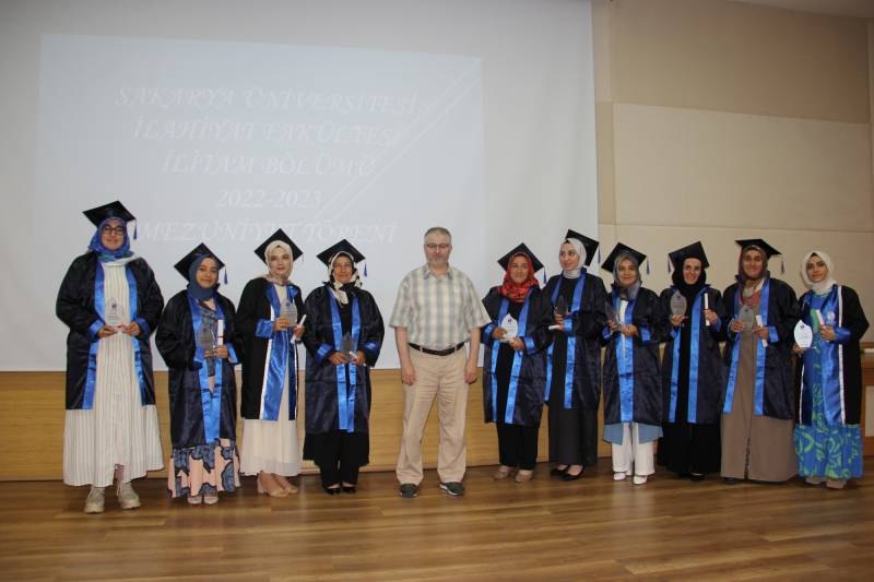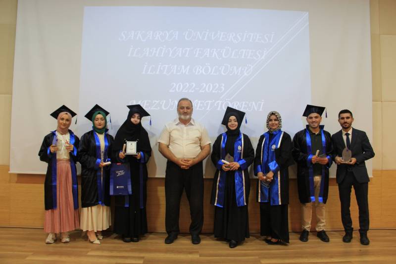 Sakarya Üniversitesi İlahiyat Fakültesi İLİTAM programı 2022-2023 öğretim yılı mezuniyet töreni konferans salonumuzda gerçekleştirildi. Törene, Dekanımız Prof. Dr. Ahmet Bostancı, Dekan Yardımcılarımız, Bölüm Başkanlarımız, hocalarımız, öğrencilerimiz ve velileri katıldı.